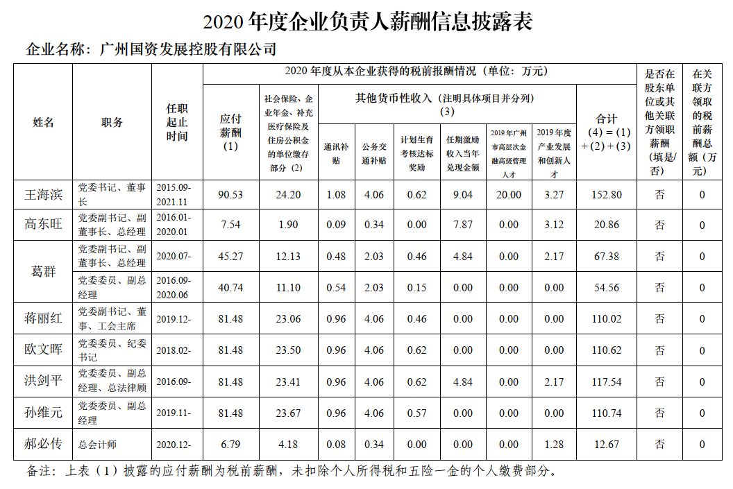 2020年度企业负责人薪酬信息披露及企业工资总额信息披露