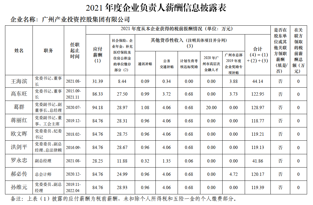 2021年度企业负责人薪酬信息披露及企业工资总额信息披露