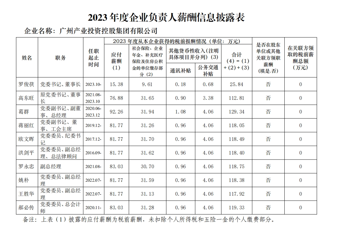2023年度企业负责人薪酬信息披露及企业工资总额信息披露